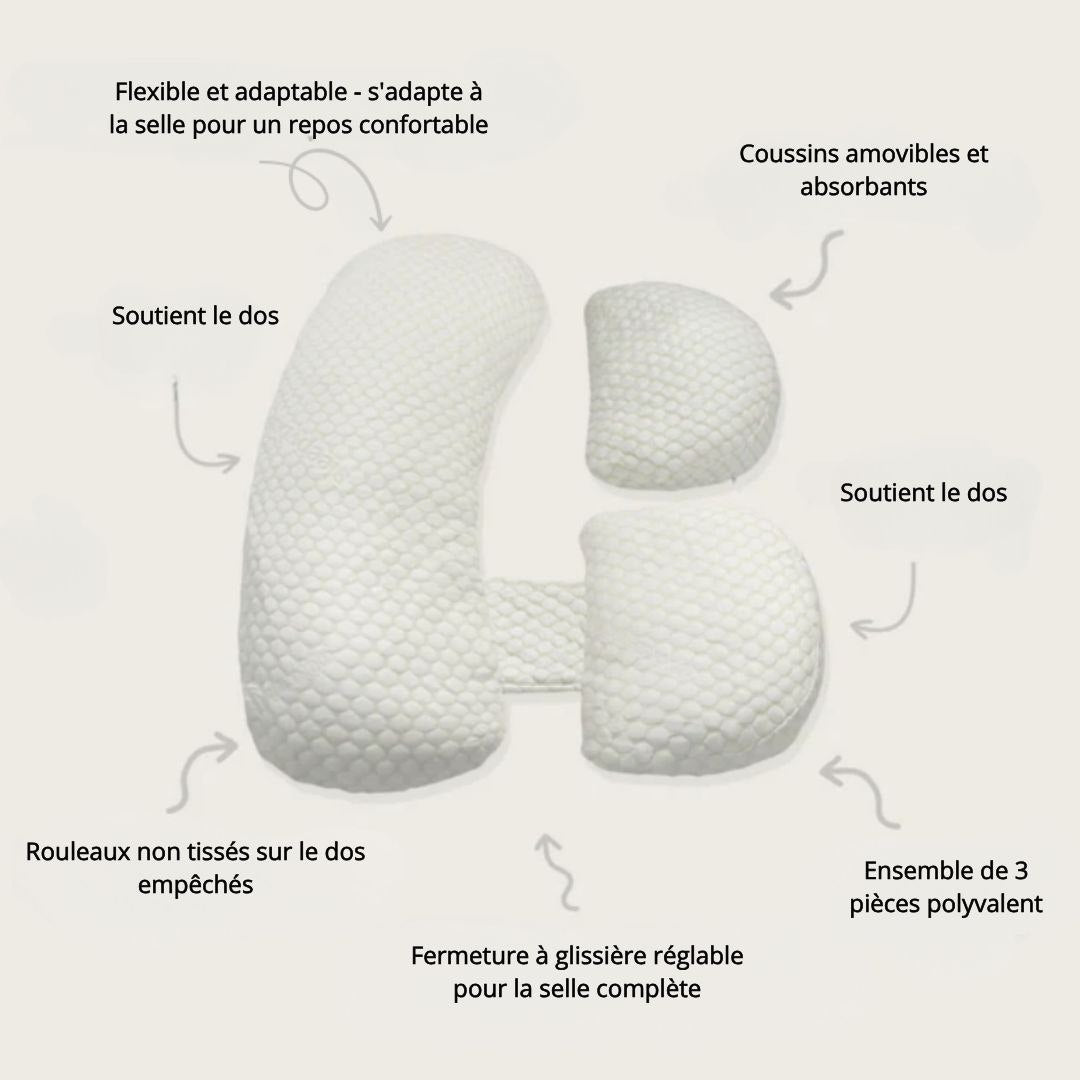 Pendant la grossesse, chaque petit confort compte. Ce coussin a été pensé pour soulager les tensions dans le dos, les hanches et les jambes. Grâce à sa forme en U enveloppante, il soutient votre ventre tout en gardant votre colonne bien alignée. Il devient vite un allié indispensable, jour comme nuit.