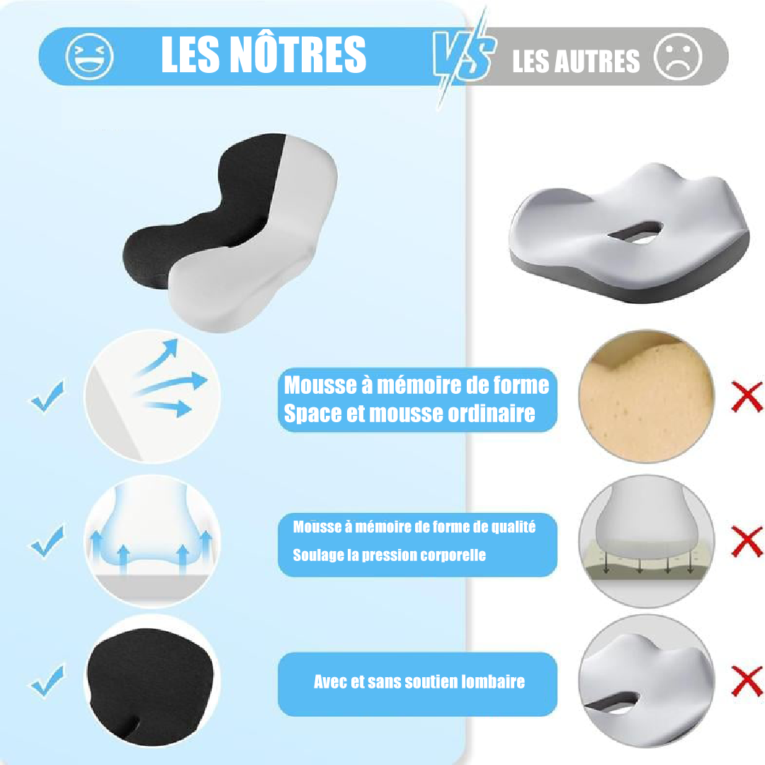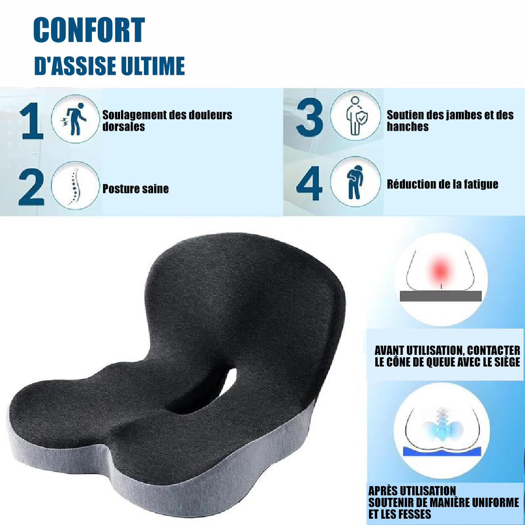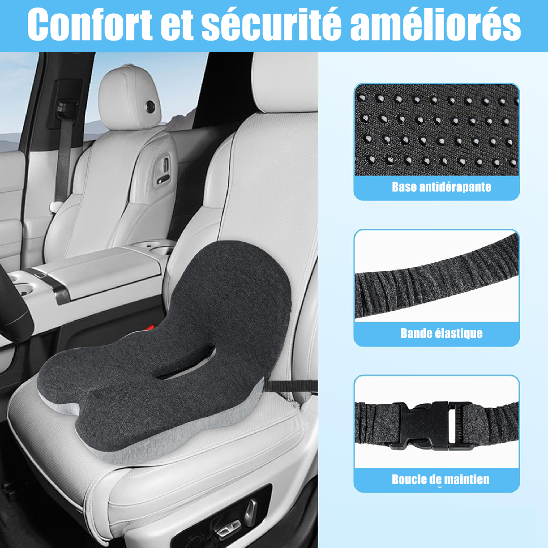 Offrez à votre dos et à vos jambes le confort qu’ils méritent. ConfortPlus™ épouse vos formes grâce à sa mousse haute densité, réduit la pression et améliore votre posture, que vous soyez en voiture, au bureau ou à la maison.