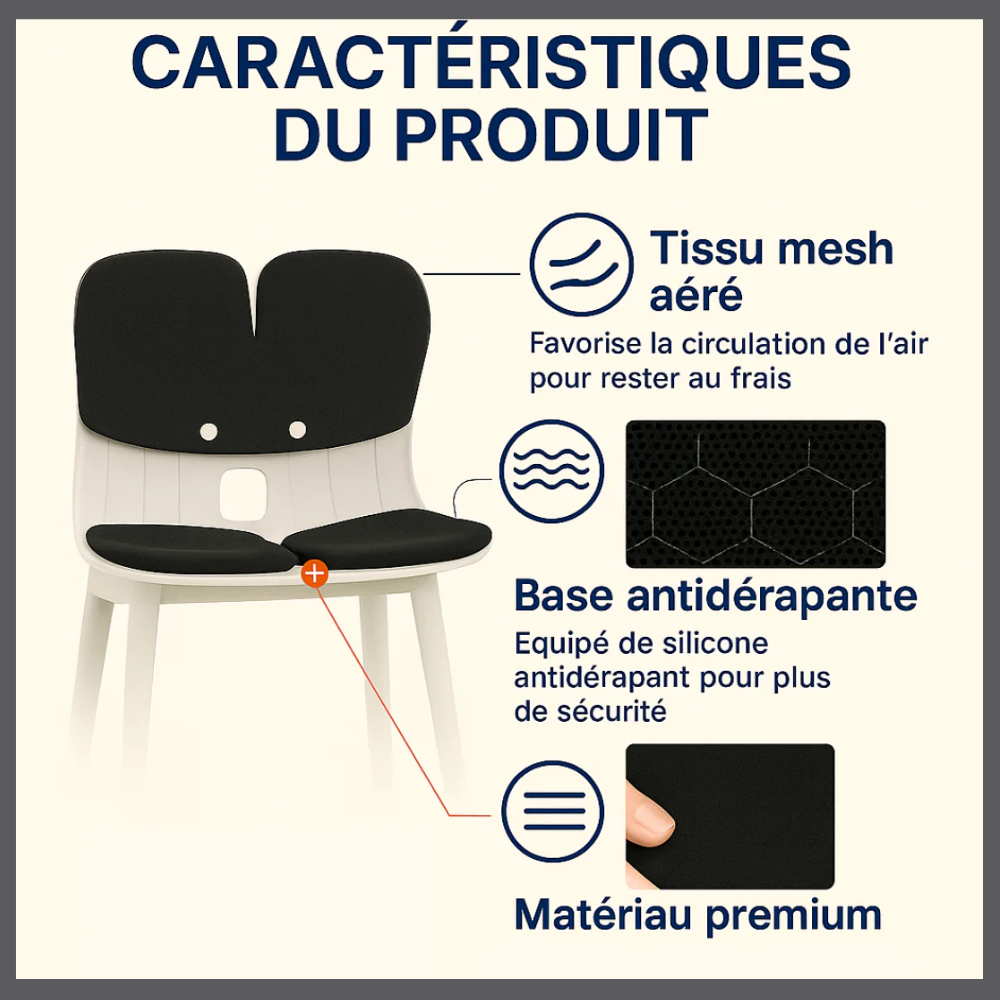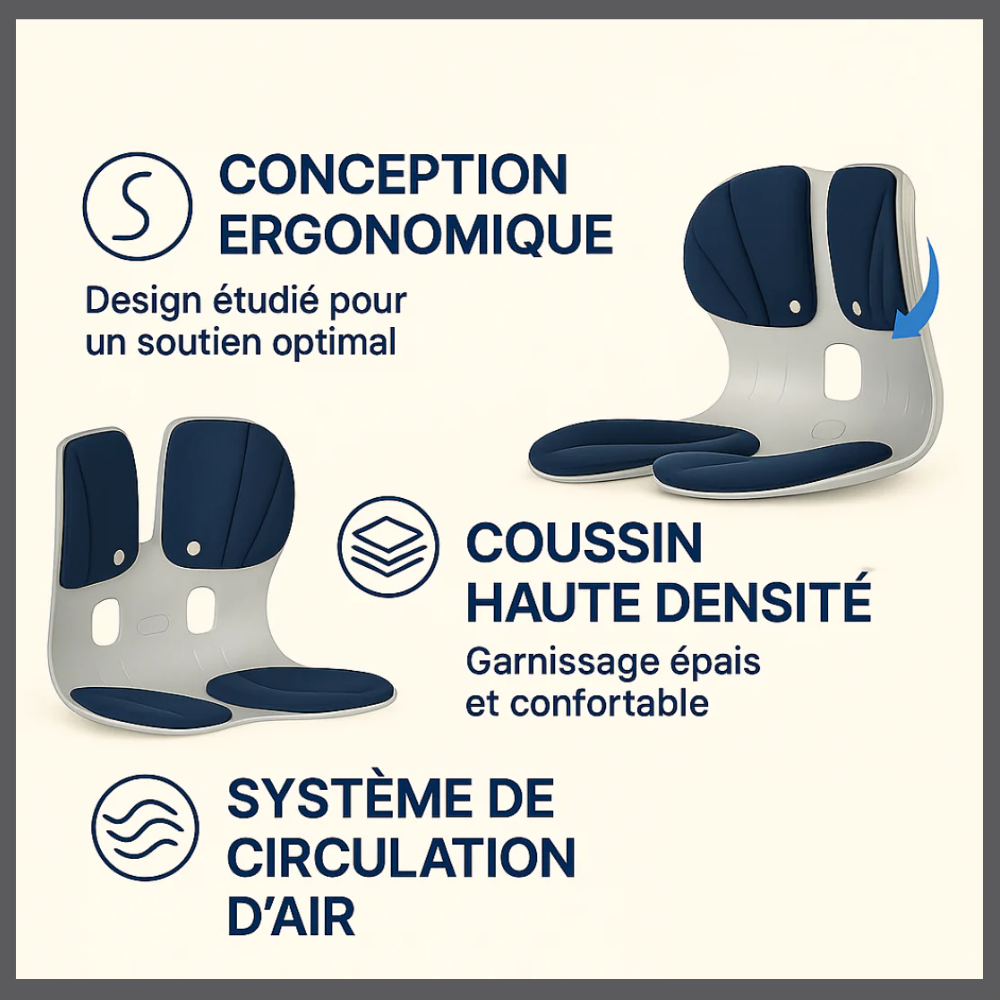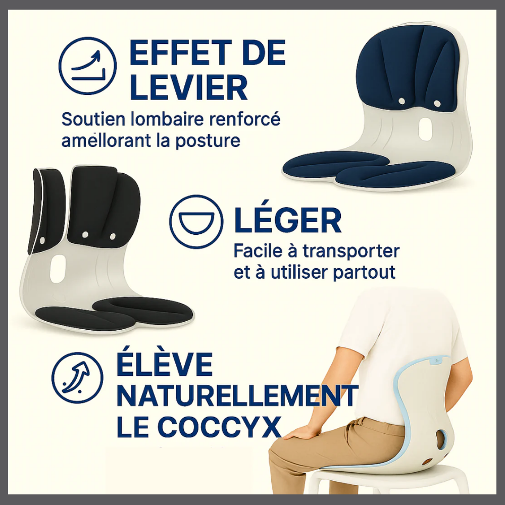 Le correcteur de posture est la solution idéale pour améliorer votre bien-être au quotidien. Conçu pour s’adapter à votre rythme de vie, il soutient vos lombaires et vous aide à maintenir une posture saine sans effort. Que vous passiez vos journées au bureau, en télétravail, ou même en déplacement, il se place facilement sur n’importe quelle chaise pour un confort immédiat. Plus qu’un simple accessoire, il devient rapidement un indispensable pour soulager les tensions et prévenir les douleurs liées à une mauvaise posture. Faites le choix du confort naturel, avec une solution simple et efficace, discrète et facile à utiliser.