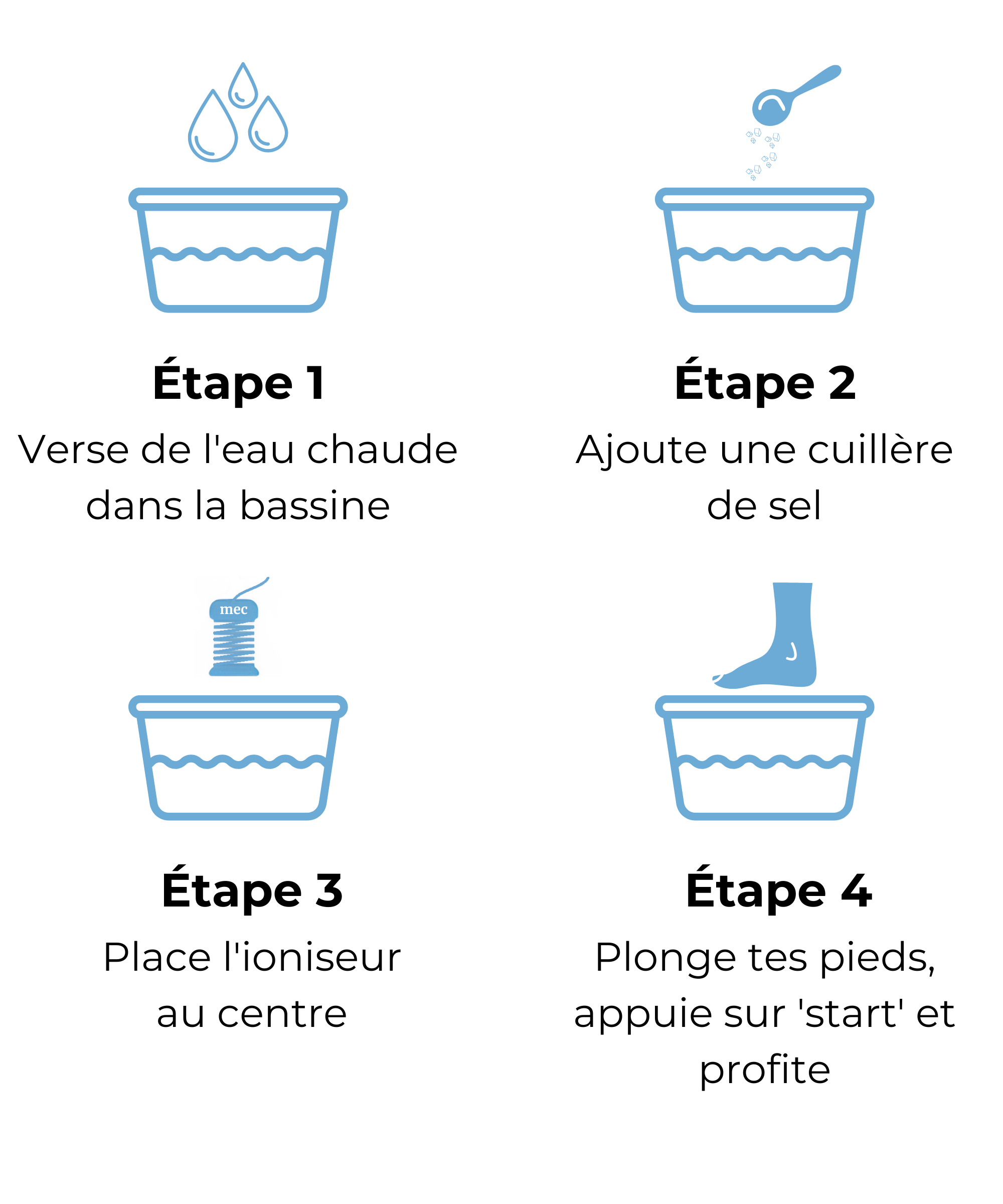 Nous recommandons de laisser vos pieds tremper pendant 15 à 20 minutes pour profiter pleinement des bienfaits détoxifiants et relaxants. Vous pouvez adapter la durée selon vos préférences personnelles.