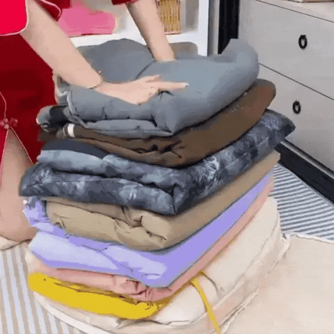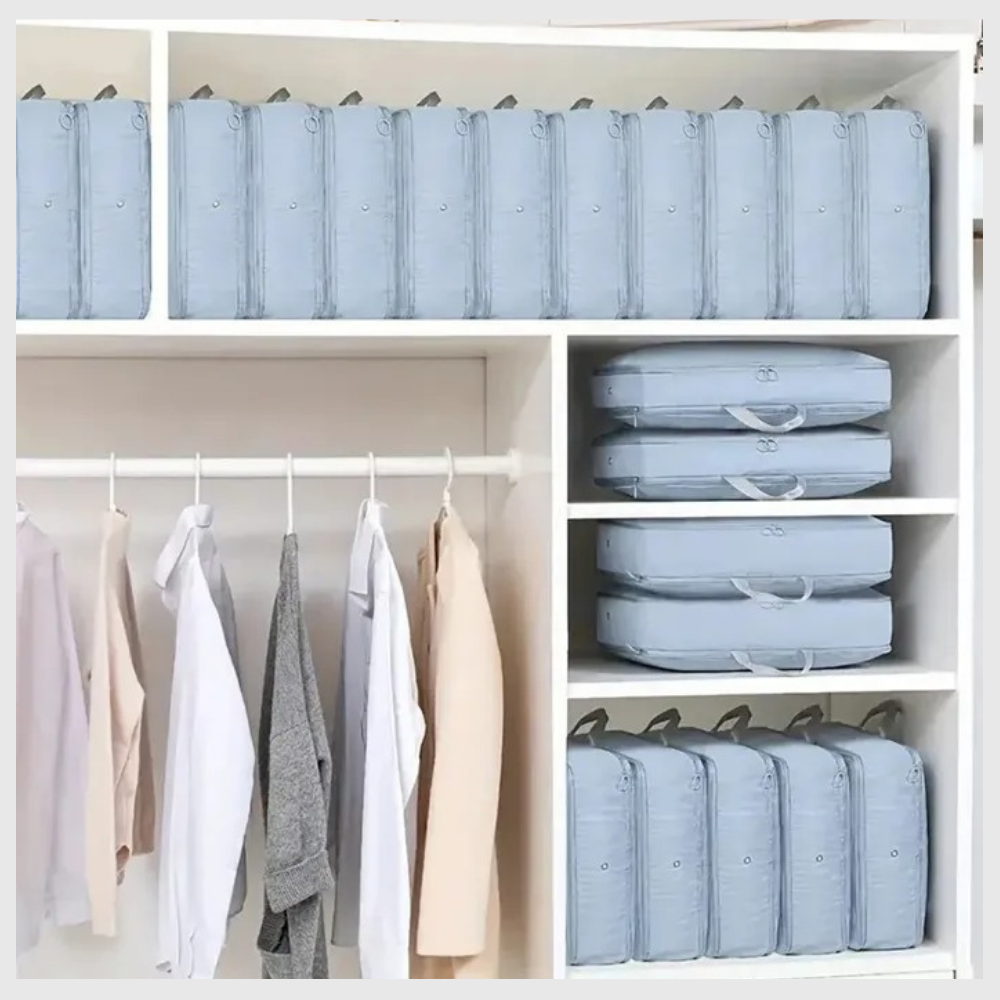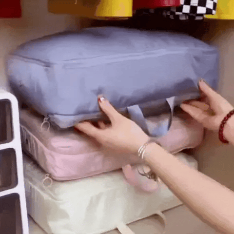 La version XXL peut contenir facilement une couette, des couvertures épaisses ou plusieurs piles de vêtements. Vous gagnez jusqu’à 50 % d’espace dans vos placards ou valises.