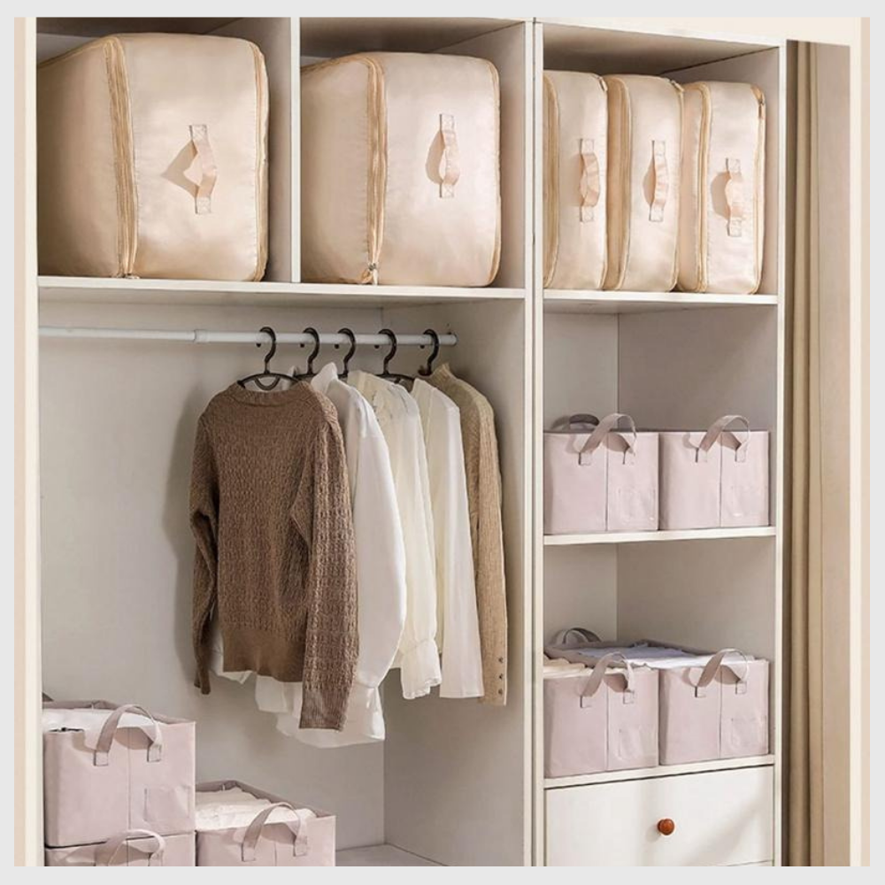 Libérez de l’espace en quelques secondes. Avec EspaceFacile™, vos armoires respirent enfin. Il suffit de plier, zipper et compresser, sans aspirateur. Vous profitez d’un rangement simple qui rend votre quotidien plus léger et votre maison mieux organisée.