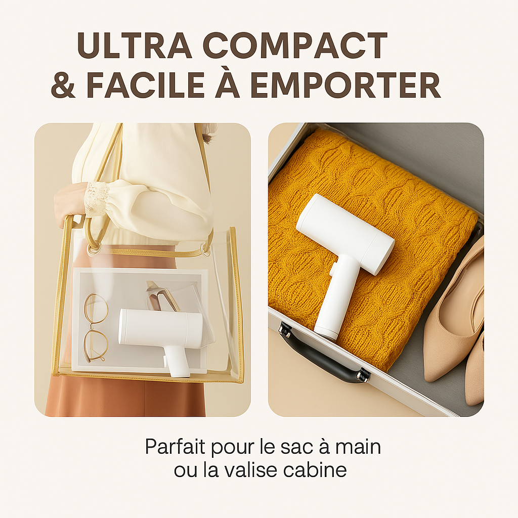 Découvrez le fer à vapeur portable de Klary Fashion, un appareil au design pliable et compact. Idéal pour les voyages, il se glisse facilement dans vos bagages tout en offrant une performance professionnelle. Élégance et praticité réunies.