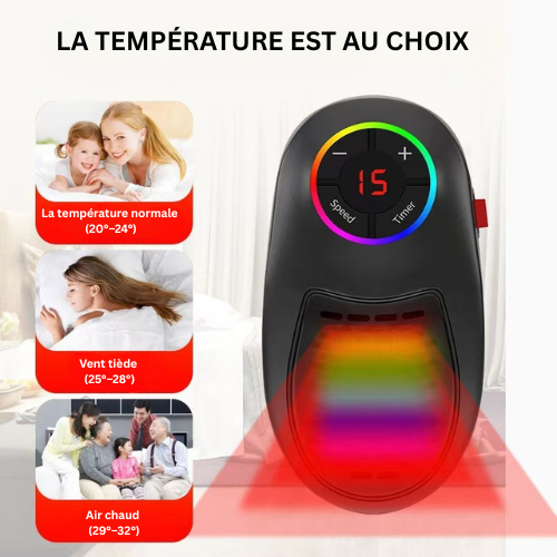 Le HeatLuxe™ est le chauffage idéal pour vos moments de détente. Avec son thermostat ajustable et sa veilleuse LED à 7 couleurs, il crée une atmosphère chaleureuse et personnalisée. Compact, silencieux et sécurisé, il s’intègre parfaitement dans n’importe quelle pièce pour vous offrir un confort optimal tout au long de l'hiver.