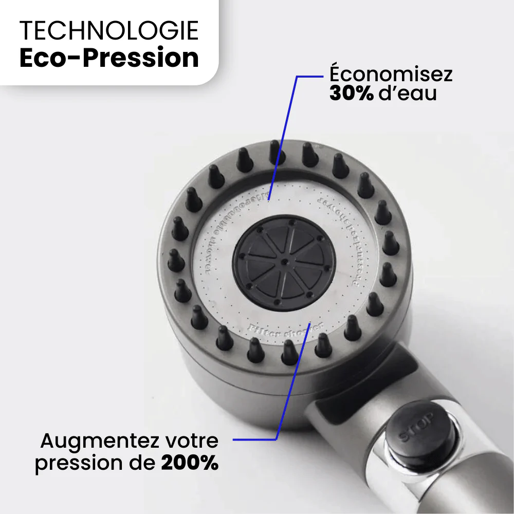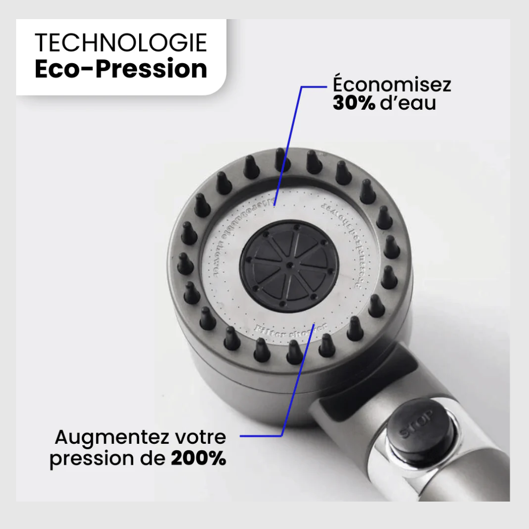 L'HydroZen combine performance et économie d'eau. En augmentant la pression tout en optimisant le débit, il réduit le gaspillage d'eau, ce qui allège vos factures tout en préservant l'environnement. Avec cette solution écologique, profitez d'une douche puissante tout en prenant soin de la planète et de votre portefeuille