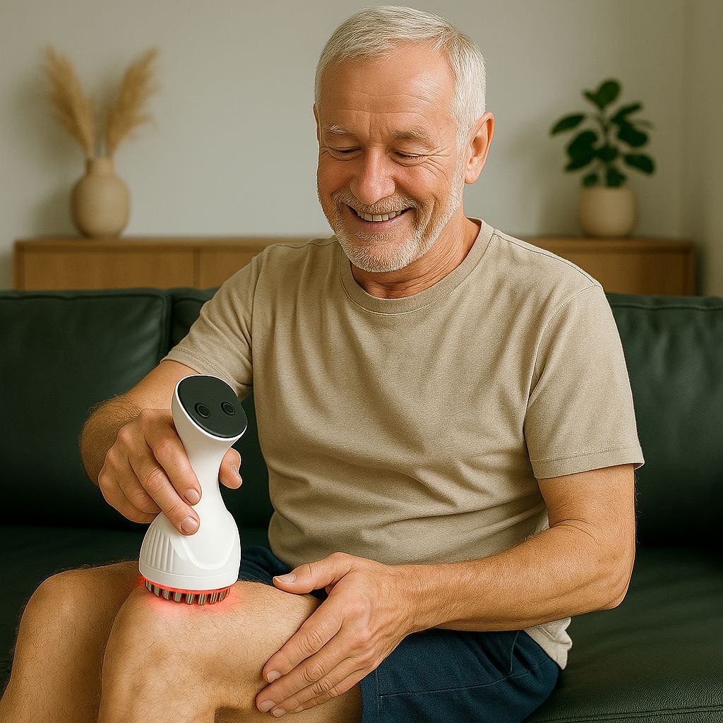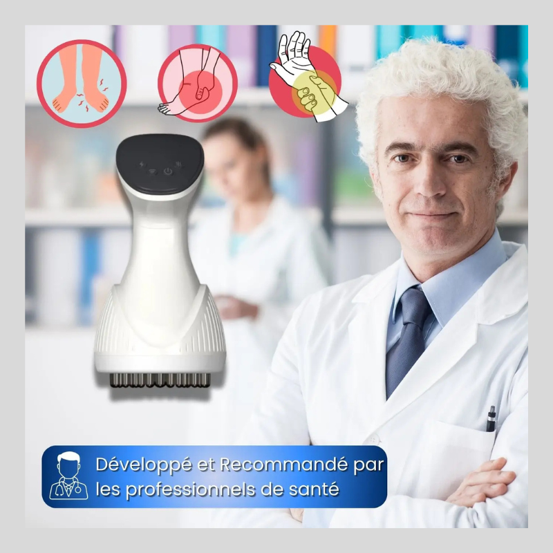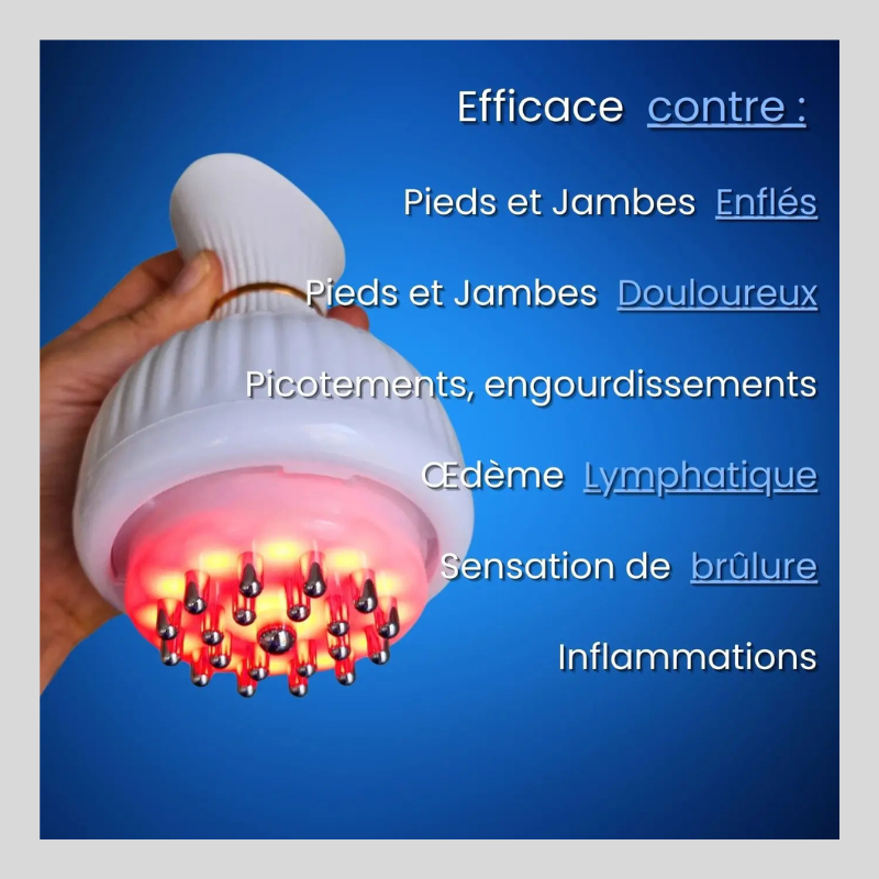 L'OrthoMasseur™ combine quatre thérapies éprouvées -drainage lymphatique, massage, lumière rouge et stimulation électrique musculaire (EMS) - pour cibler efficacement les douleurs neuropathiques. En seulement 15 minutes par jour, il améliore la circulation sanguine et réduit l'inflammation.