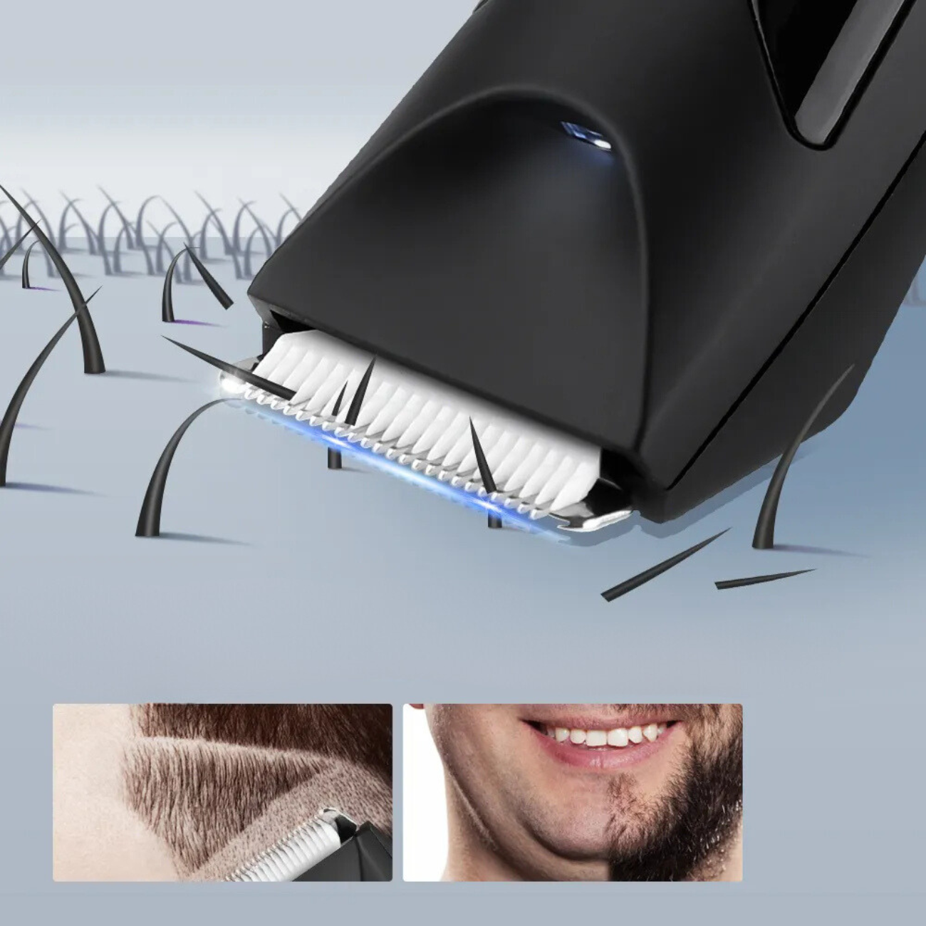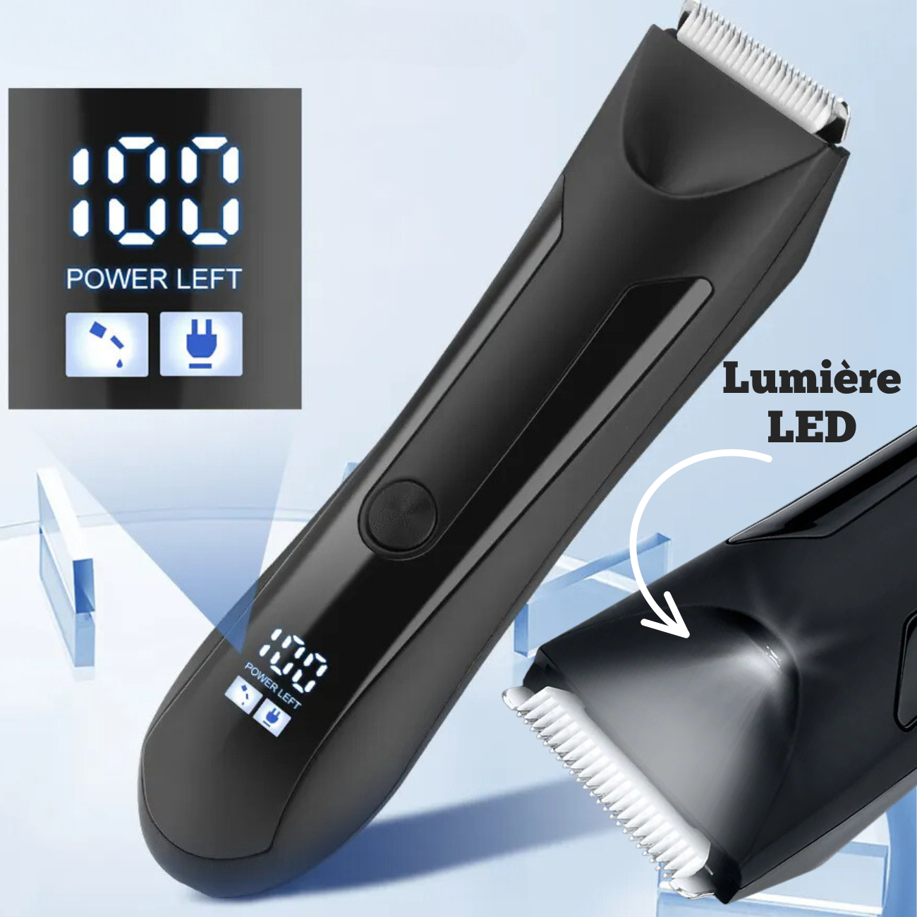 Profitez d'une longue durée de vie de la batterie pour des séances de tonte sans interruption. La tondeuse est également équipée d'une lumière LED puissante permettant un rasage en tout temps. Le pack est conçu pour offrir une performance continue, idéale pour un usage intensif.
