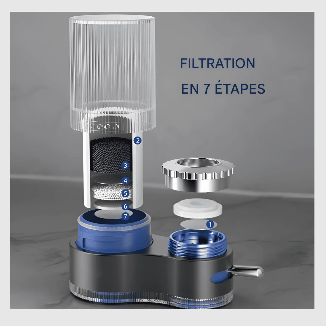 Contrairement aux filtres classiques à 2 ou 3 étapes, notre purificateur utilise un système avancé de 7 niveaux de filtration :