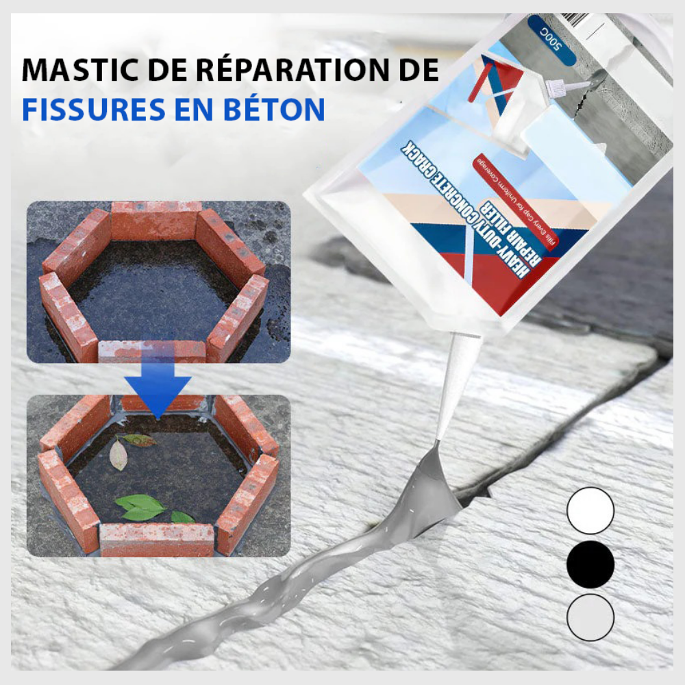 Le mastic de réparation de fissures offre une solution rapide et efficace. 💪 Portable, facile à utiliser 👍 et polyvalent, il s'adapte à toutes vos réparations de surfaces en béton, garantissant une finition durable. 🏠