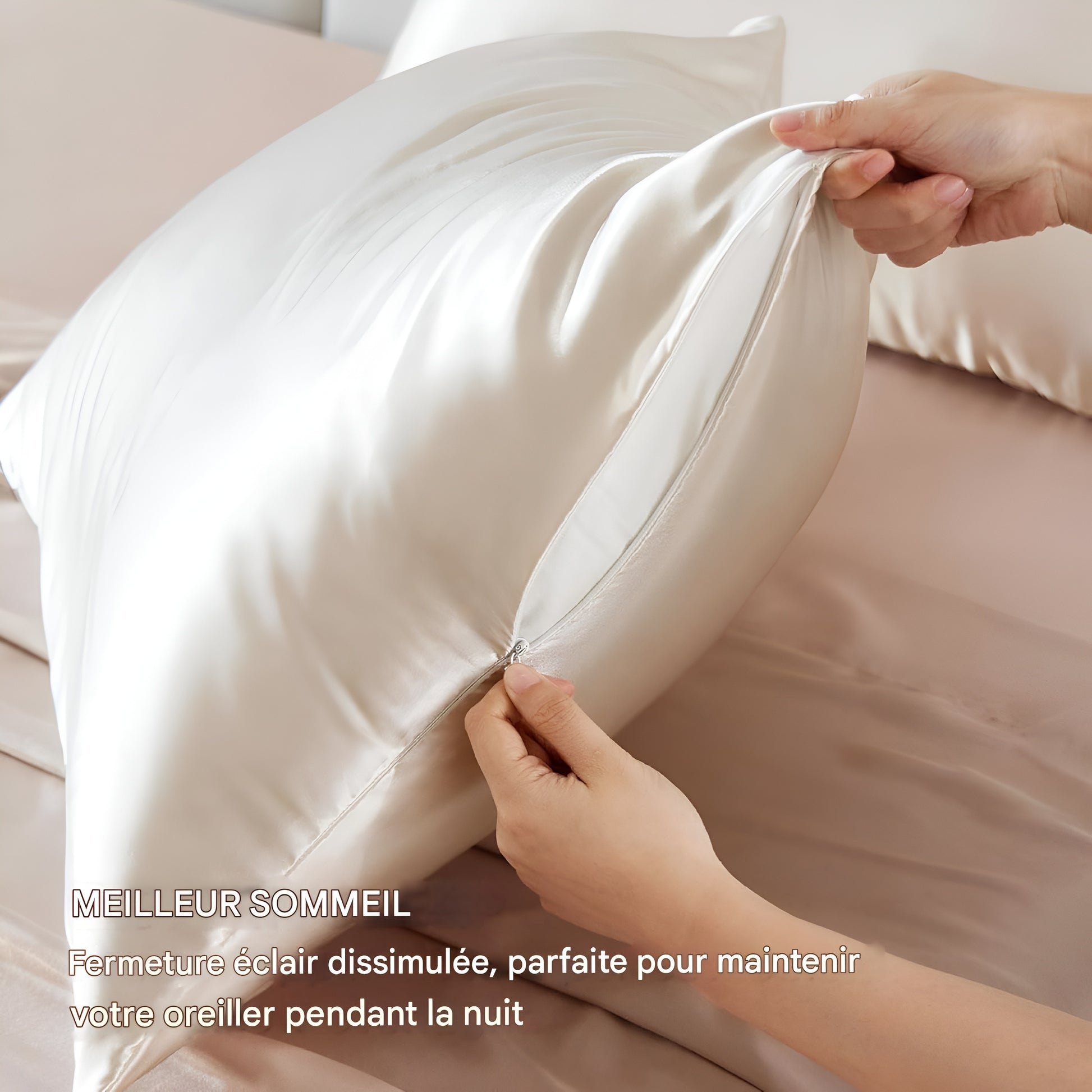 Fabriquée avec de la soie de mûrier de première qualité, SoiePure™ allie élégance, durabilité et bienfaits beauté.