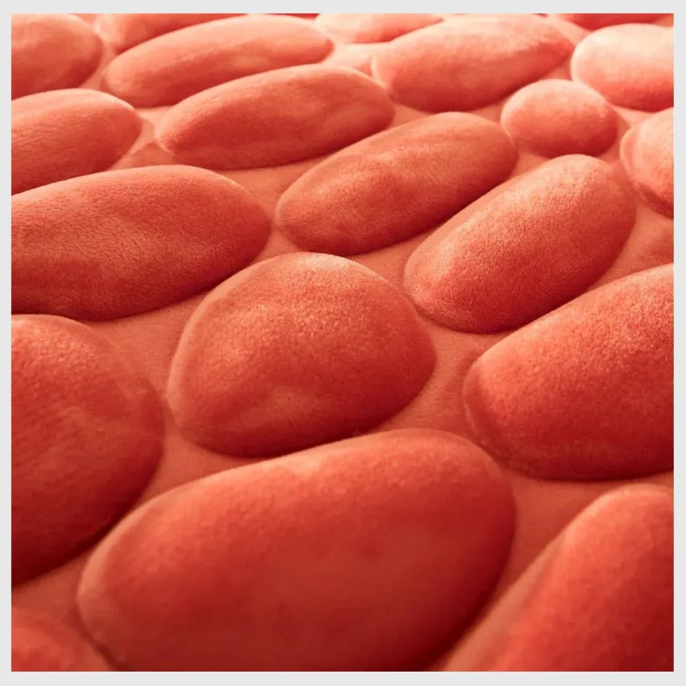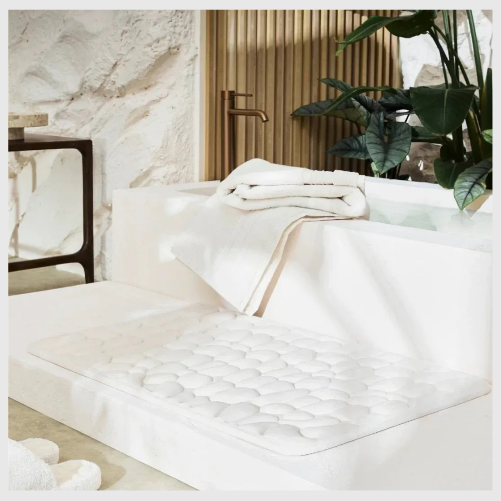 Dès que vous sortez de la douche, vos pieds reposent sur une surface douce qui rappelle des petits galets moelleux. Le tapis accueille chaque pas avec chaleur et stabilité, rendant la salle de bain plus agréable, surtout lors des matins froids du Québec.