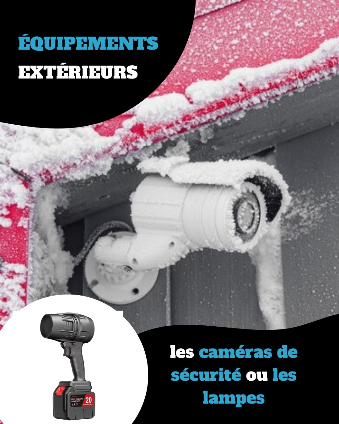 Souffleur I90 Pro™ est parfait pour dégager vos équipements extérieurs recouverts de neige, tels que les caméras de sécurité ou les lampes. Maintenez une visibilité optimale et un éclairage fonctionnel en toute saison, sans effort. Un allié précieux pour préserver vos installations hivernales.