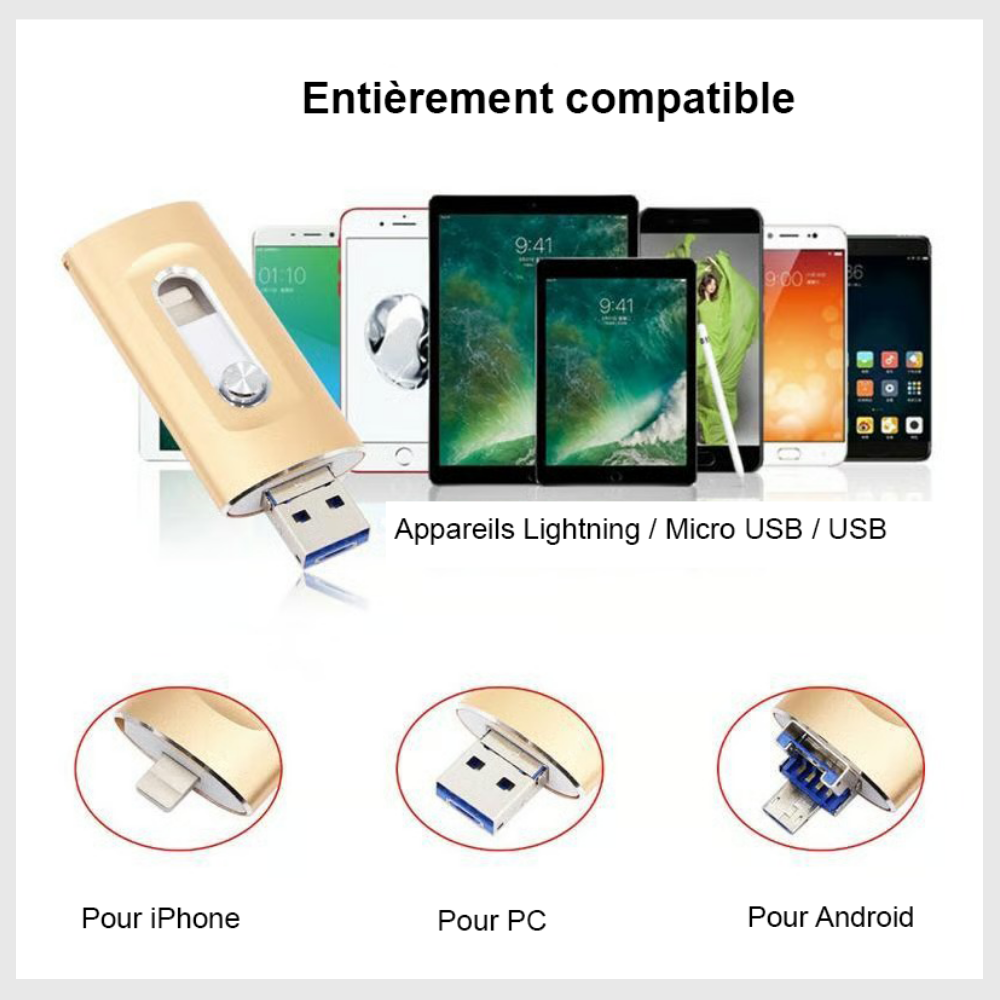 Oui, il est compatible avec la majorité des téléphones Android et iPhone. Pour Android, il faut que la fonction OTG soit activée dans les réglages. Pour iPhone, une petite application gratuite est requise.