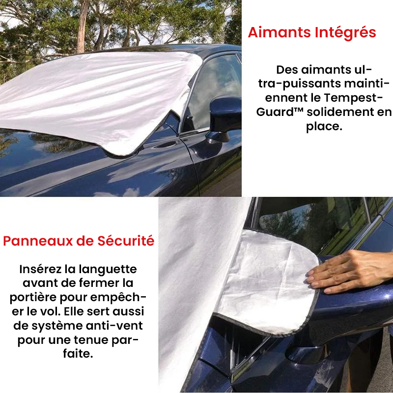 TempestGuard™ garde votre pare-brise propre et prêt à partir, peu importe la météo. Neige, givre ou soleil intense : il protège votre véhicule en douceur et vous fait gagner du temps, chaque jour de l’année.