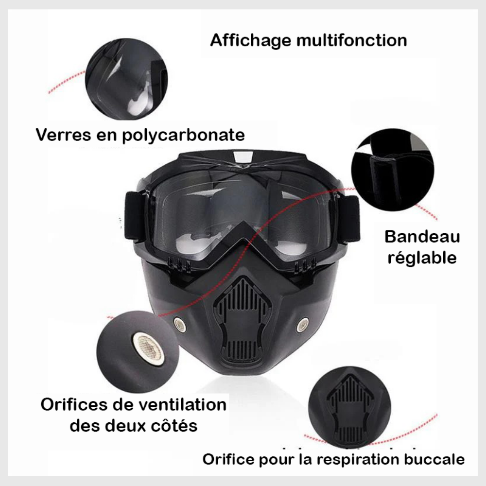 Doté d’un affichage multifonction, de verres en PC résistants et d’un bandeau ajustable, ce masque assure confort et sécurité. Les orifices de ventilation et de respiration améliorent l’usage, même lors d’un port prolongé.